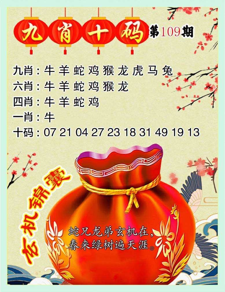 | 109期:绝杀③肖→ 【鸡猪龙】开:?00准 |